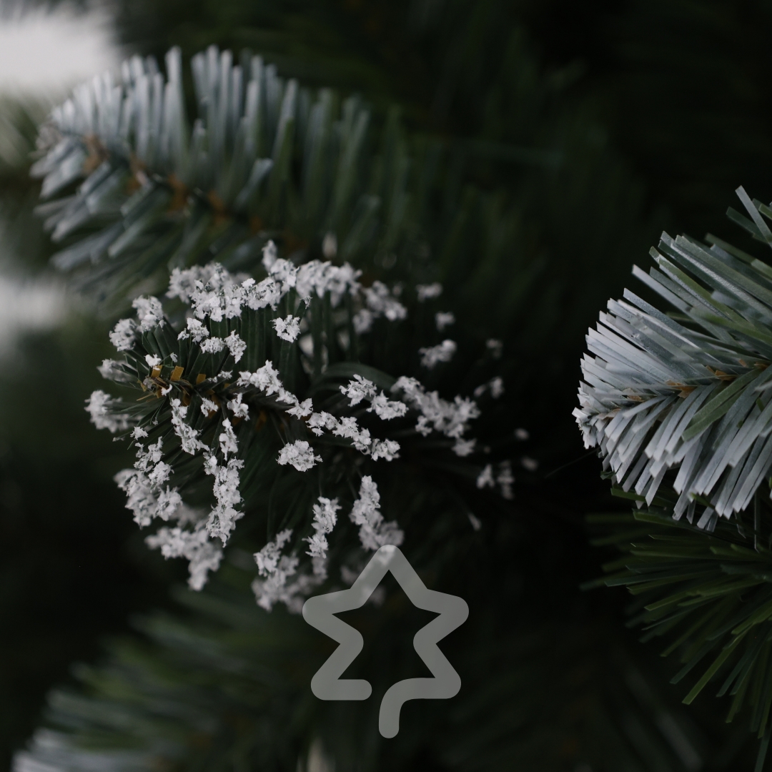 Borovice zasněžená 180 cm se vyznačuje dlouhým jehličím a plným, nadýchaným vzhledem a jemným zasněženým efektem, který navodí zimní atmosféru.