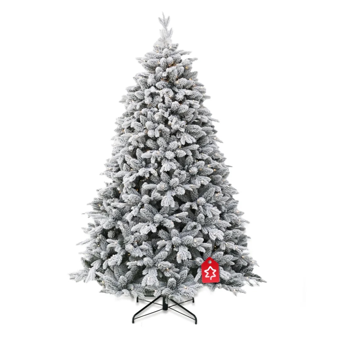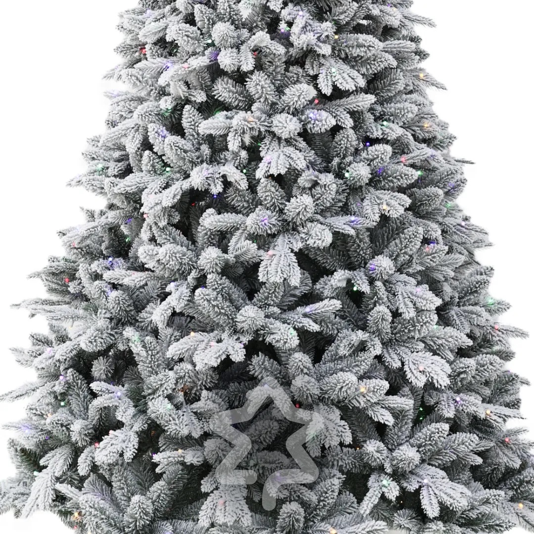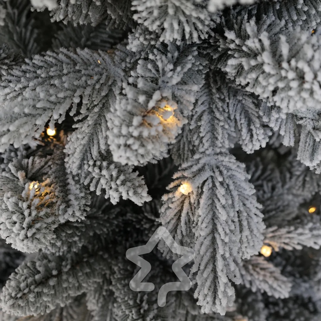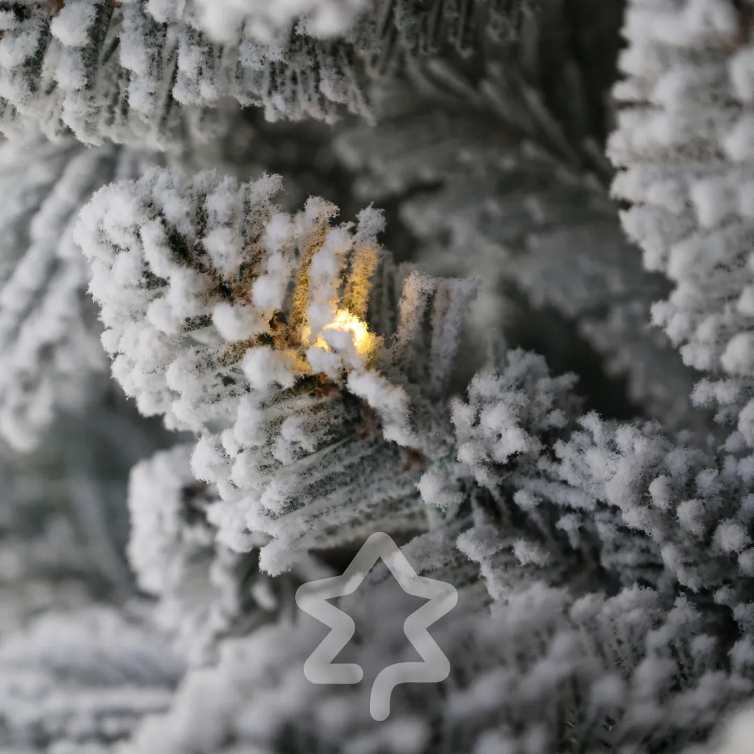 Smrk Bílý 250 LED 150 cm se vyznačuje elegantní siluetou a tradičním vzhledem a jemným zasněženým efektem, který navodí zimní atmosféru.