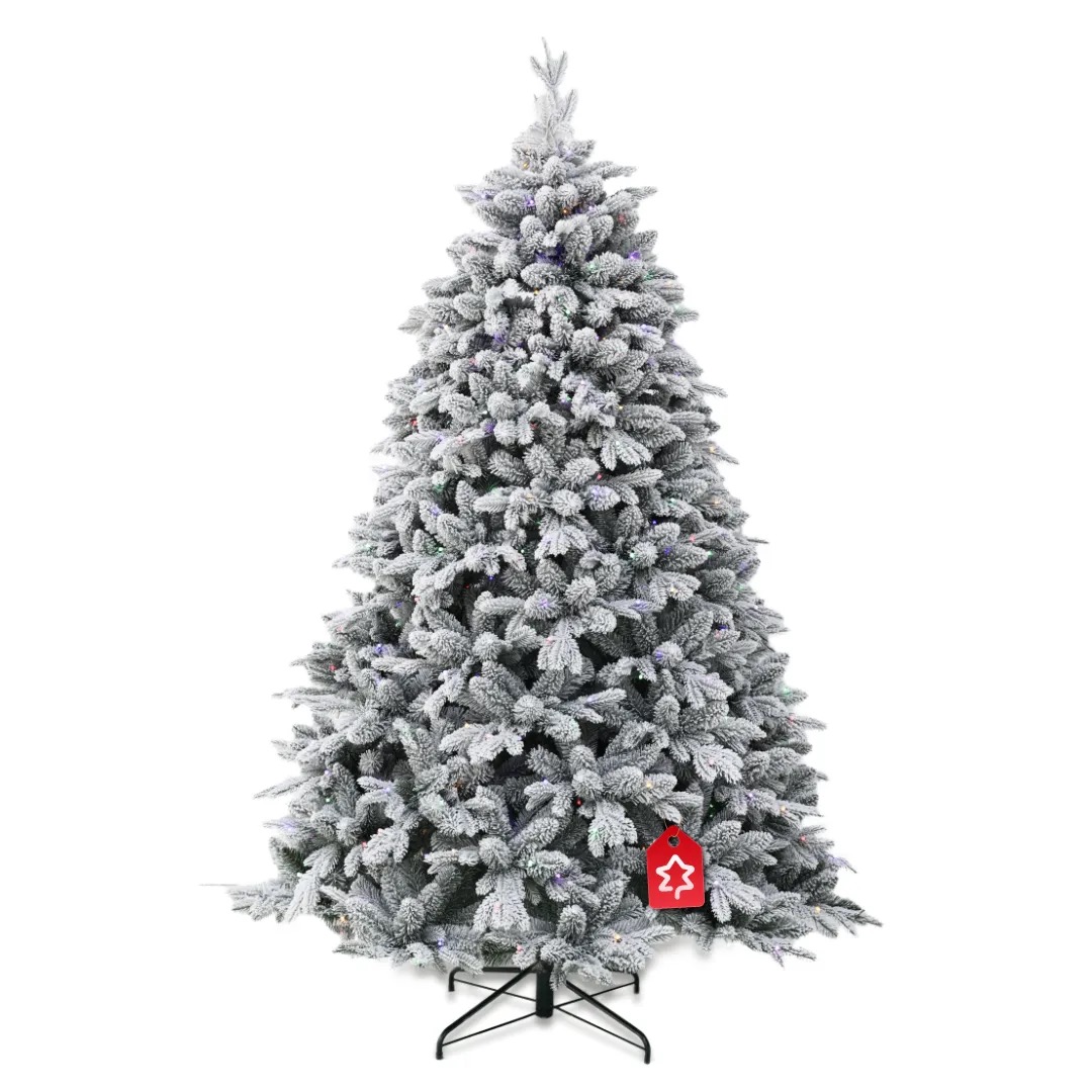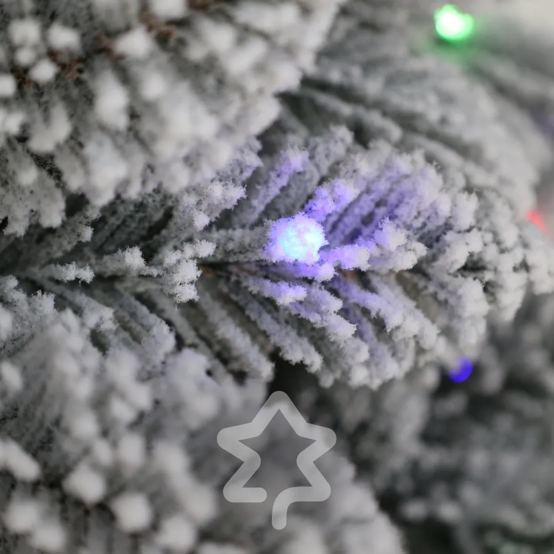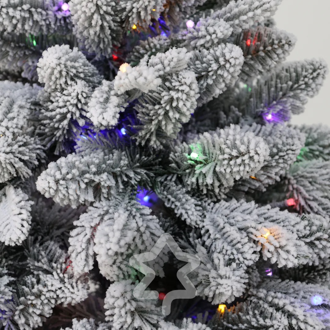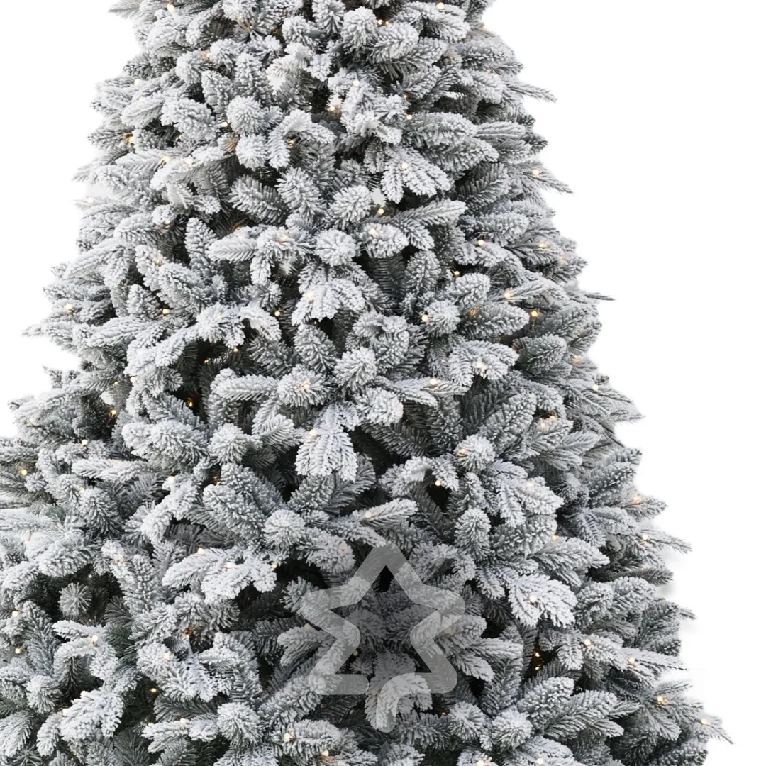 Smrk Bílý 250 LED 150 cm se vyznačuje elegantní siluetou a tradičním vzhledem a jemným zasněženým efektem, který navodí zimní atmosféru.